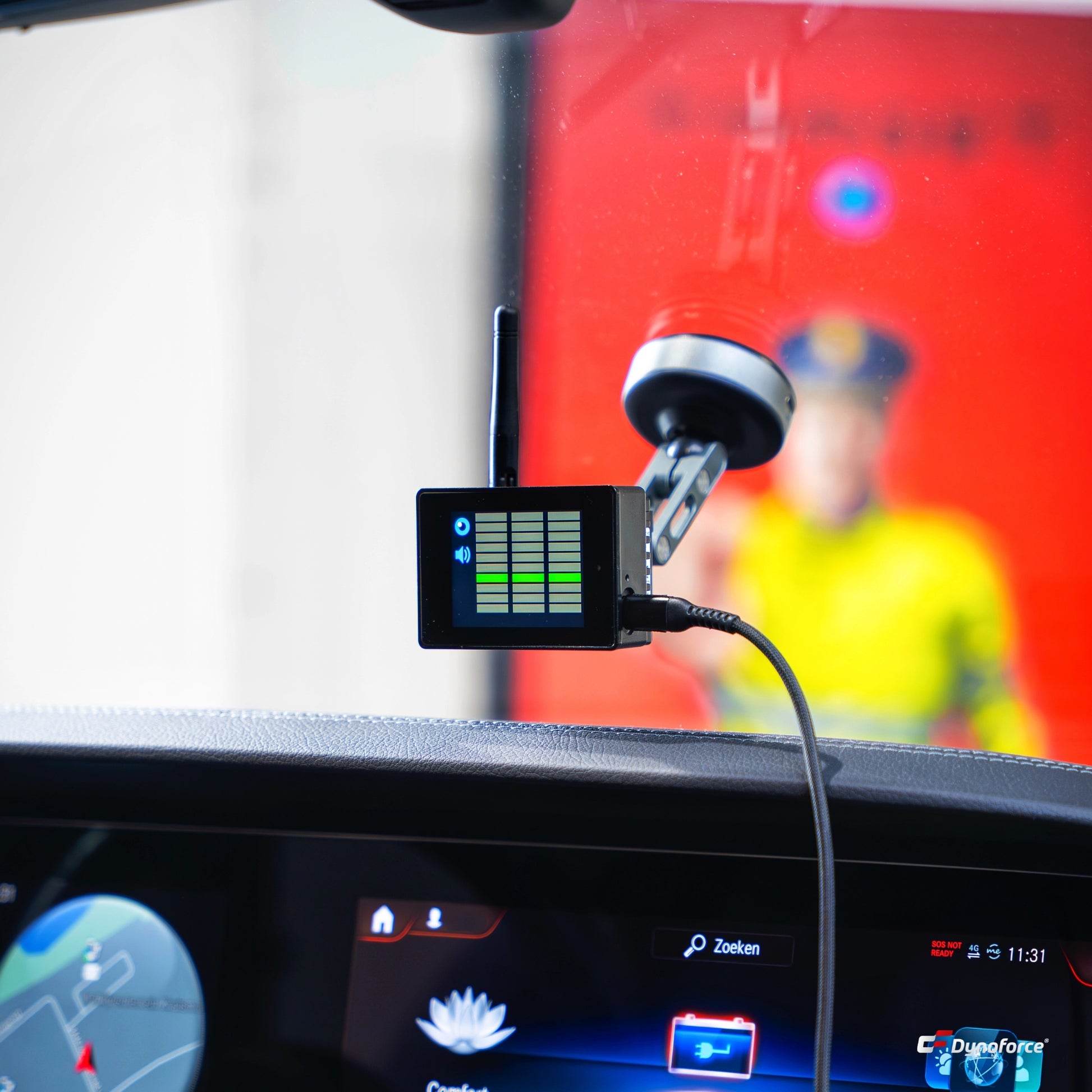 Dankzij het compacte ontwerp en de ingebouwde antenne bevestig je de Blu Eye GO eenvoudig aan je voorruit. De voeding gaat via een USB-C kabel, dus je kunt hem in élk voertuig gebruiken. Ideaal voor wie regelmatig van auto wisselt, een auto van de zaak rijdt, of geen inbouwsysteem wil.